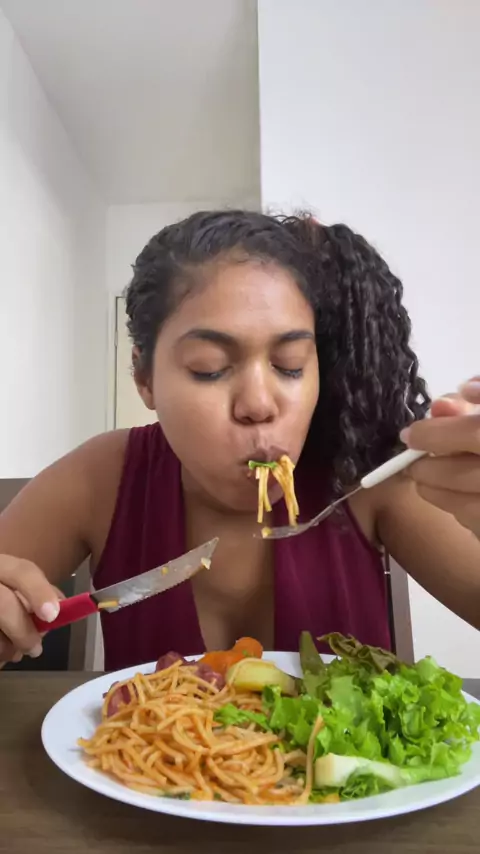 Almoce comigo e hoje foi macarrão com verdura no vapor #almocecomigo #macarrao #comendo #foryou