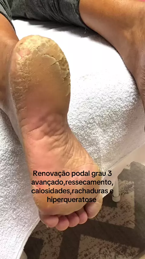 #hashtag#renovacaopodal#pe#plasticadospes#Studio#calosidade#ressecamento#rachaduras# A "Renovação Podal" é um procedimento de cuidado com os pés que visa remover células mortas, calosidades, ressecamento e, em casos mais avançados, rachaduras, de forma geralmente indolor e sem o uso de objetos cortantes. É frequentemente referida como "Plástica dos Pés". O termo Renovação Podal Grau 3 se refere ao nível de gravidade das condições dos pés que serão tratadas, indicando um estado mais avançado.