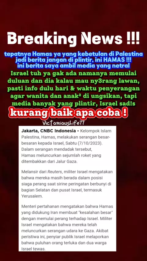 #breakingnews #israel mewartakan p*rang terhadap h4mas sumber berita : #cnbcindonesia #allglorytogod #kasihkarunia #bythegraceofgod #tuhanyesusmemberkati #victoriouslife77