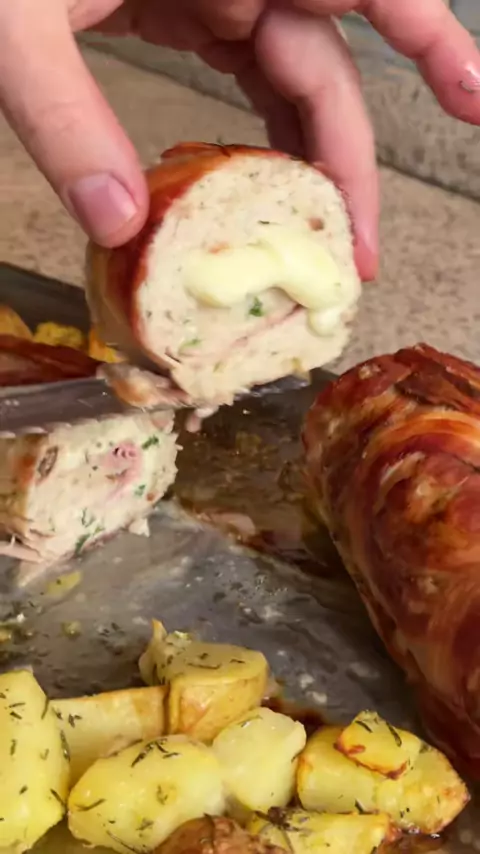 "Polpettone de Frango com Batatas Assadas! Um clássico italiano com um toque especial. Qual é o seu Polpettone favorito? Comenta aí! #PolpettoneDeFrango #BatatasAssadas #ComidaItaliana #ReceitaFácil #Delicioso #CulináriaItaliana"
