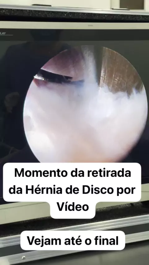 Momento da retirada da Hérnia de Disco por cirurgia endoscópica da coluna.