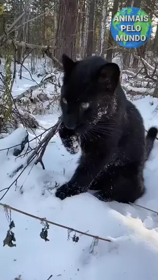 Filhote de pantera-negra na neve βπ . . #panteranegra #felinos #snow #wild