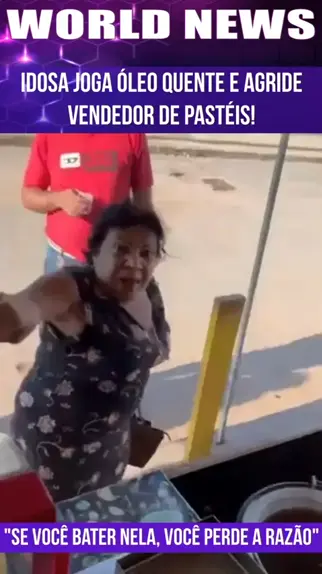 Idosa bastante nervosa vai em um estabelecimento que vende pastĂ©is, e por nĂŁo passarem ela na frente por ser idosa, ela decidiu agredir e jogar Ăłleo quente no trabalhador do estabelecimento. #News #NotĂcia #Confusao #fofoca #briga