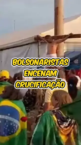 Acampados há mais de um mês em frente ao Quartel General do Exército em Brasília, um grupo de bolsonaristas aproveitou do momento de fé para encenar o sofrimento de Jesus na cruz. 11/12/2022 Fonte: Metrópoles #noticias #noticiasocial #fy #viral #News