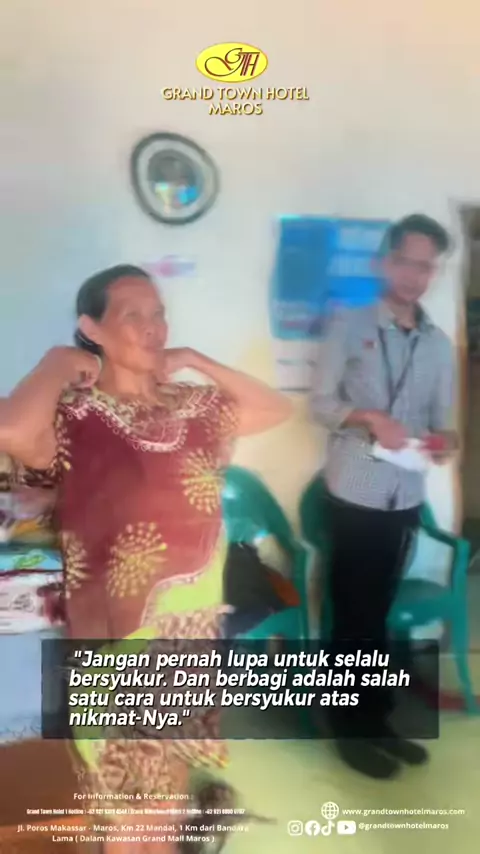 -// Grand Town Hotel Maros Melaksanakan kegiatan Grand Town Hotel Maros Berbagi Tahun 2025 Yang di laksanakan pada Hari Rabu, 26 Maret 2025 yang bertempat di 3 Kecamatan di Kabupaten Maros yakni Kecamatan Turikale, Kecamatan Simbang , dan Kecamatan Mandai yang dimana target dari Kegiatan ini adalah 10 lansia / orang orang tua yang sudah lanjut usia, kurang mampu atau tinggal sebatang kara Kegiatan ini dilaksanakan selama satu hari yang dimulai dari ja 09:00 pagi dengan mekanisme penyaluran men...