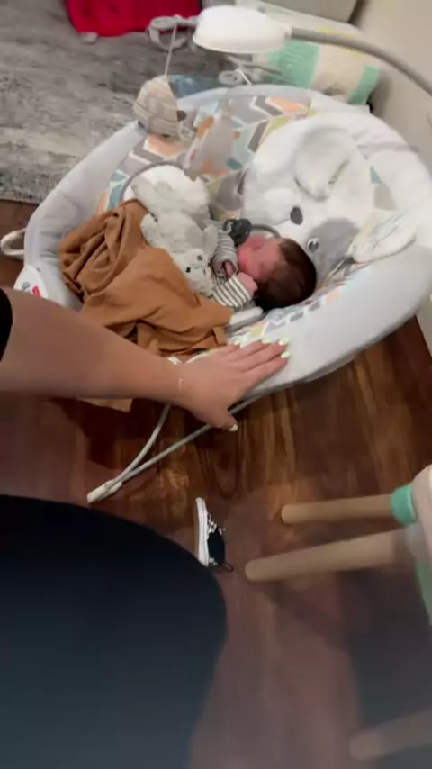 Balanço do cão filhote! # babyhack # newbornhack # momlife # fisherprice # fisherpriceswing