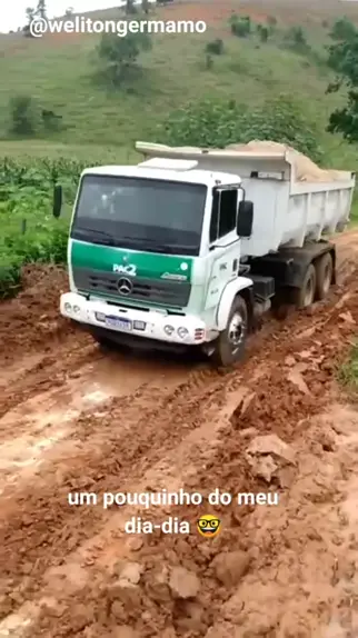 caminhão caçamba no barro descarregando cascalho em movimento #caminhao #Trabalho #motorista # #ÉosGuriPai #kwai المزيد