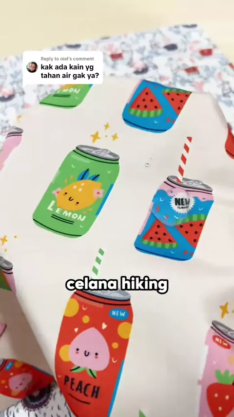 Replying to @niel Kain tahan air?! Tentu ada! Arlie percetakan kain memiliki kain dengan sifat Water Repellent yang memberikan efek daun talas π Kain Taslan yang halus dan nyaman untuk outfit atau produk outdoor dan Kain Kanvas Lima WR yang tebal dan kokoh cocok untuk berbagai tas yang tahan lama β¨#goodtoknow#bahanantiair#produkoutdoor#streatwearstyle#OOTD#tas#bahanwaterrepellent#ideproduk#kainartlie#kaincustom#printingkain
