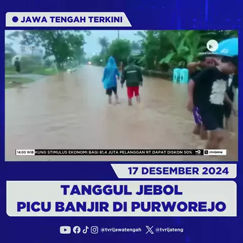 Tanggul Jebol Picu Banjir di Purworejo#JatengTerkini 17 Desember 2024 Tanggul sungai kemiri kidul di Purworejo kembali jebol akibat tidak kuat menahan debit air. Air meluap ke pemukiman serta merendam jalan nasional.#banjir#purworejo#infobanjir#jalannasional#beritajateng#TVRIJateng