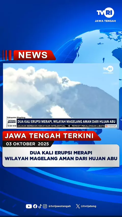 Dua Kali Erupsi Merapi, Wilayah Magelang Aman Dari Hujan Abu. #jatengterkini 3 Oktober 2025 Pasca erupsi Gunung Merapi pada 1 dan 2 Oktober, BPBD Kabupaten Magelang menyatakan kondisi wilayah tetap aman. Saat ini, status Gunung Merapi masih berada di Level III atau Siaga. #ErupsiGunungMerapi #MagelangAman #beritatvrijateng #tvrijawatengah More