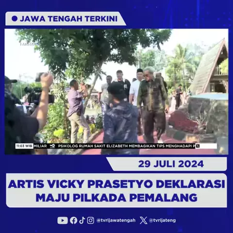 Artis Vicky Prasetyo Deklarasi Maju Pilkada Pemalang#JatengTerkini 29 Juli 2024 Selebritas Vicky Prasetyo mendeklarasikan pencalonan sebagai wakil bupati Pemalang bersama calon bupati RM. Nurhidayat Hanyokrokusumo. Vicky Prasetyo menjanjikan Pemalang menjadi daerah maju dan lebih terkenal.#pilkada#pemalang#vickyprasetyo#politik#beritaviral#beritajateng#TVRIJateng