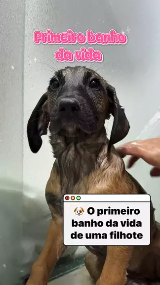 O primeiro banho da vida de uma filhote 🐶 #cachorro #cachorros #viralata #viralatacaramelo #banhoPet