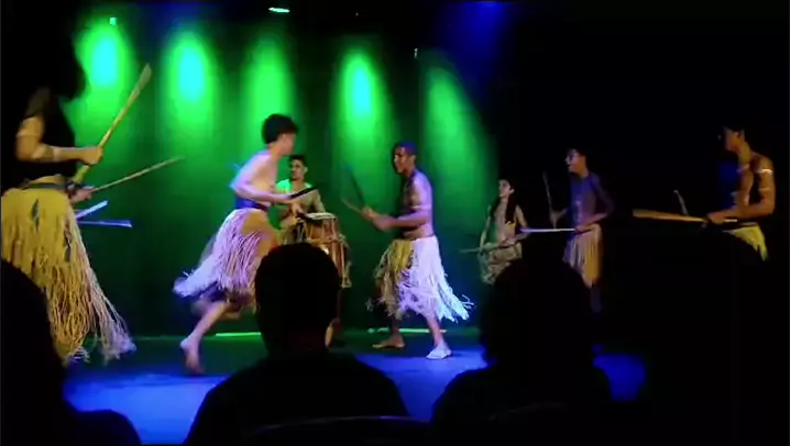 Apresentação de maculelê. Maculelê é uma dança tribal afro-indigina que já foi usada como luta mas hoje ele é apresentada em grupos de capoeira e Danças.