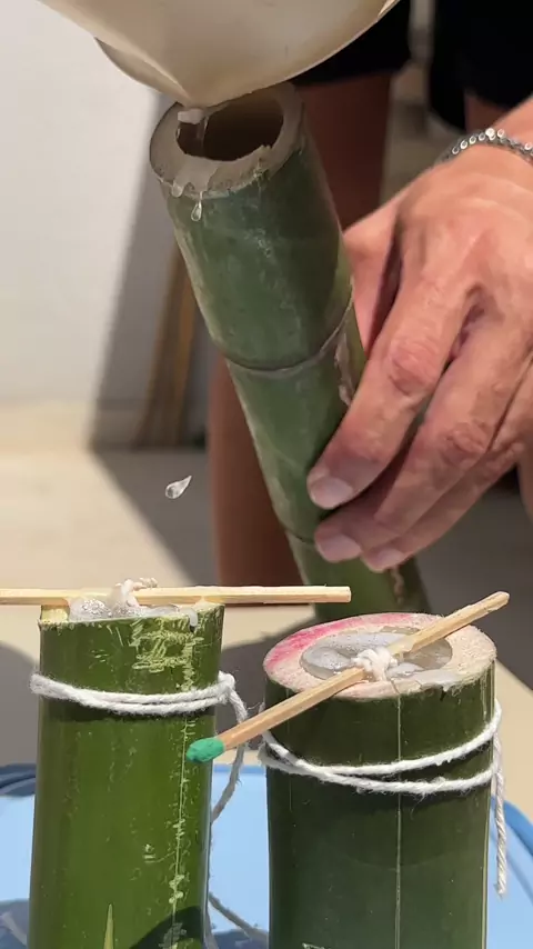 Ele fez uma vela com o bamboo π