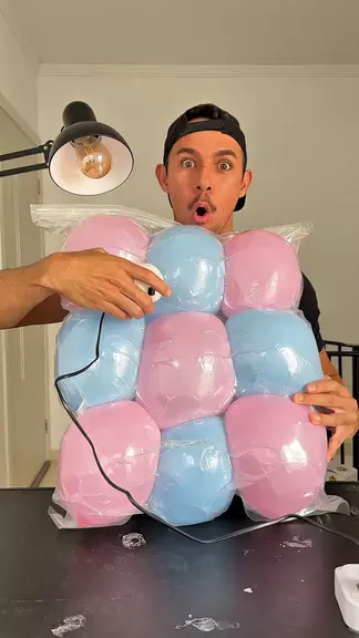 Ele fez um colchão inflável de balões 😳