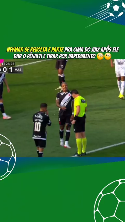 NEYMAR SE REVOLTA E PARTE PRA CIMA DO JUIZ APÓS ELE DAR O PÊNALTI E TIRAR POR IMPEDIMENTO 🧐🧐 #esporteviral #fofocadefutebol #santosxvasco #Brasileirão #esporte