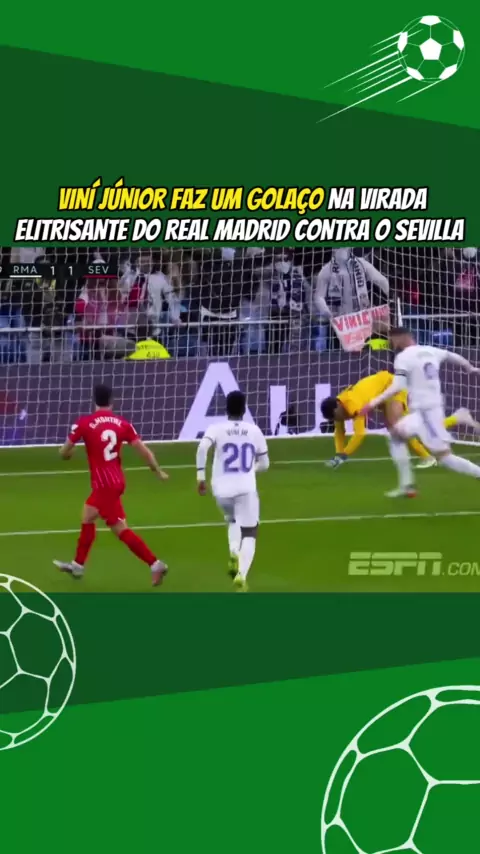 VINÍ JÚNIOR faz um golaço na virada ELITRISANTE do Real Madrid contra o SEVILLA! #esporteviral #fofocadefutebol #realmadrid #Futebol #jogoemcasa More