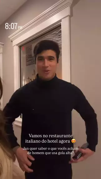 Vamos no restaurante italiano do hotel agora 😍 Jan quer saber o que vocês acham de homem que usa gola alta? #premiokwai2025 #brasileirão2025
