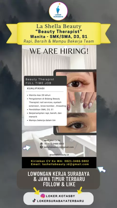 Lowongan Kerja Salon Lashella Beauty #lowongansurabaya#infolokersurabaya#lokersurabayaterbaru#lowkersurabaya#lokertherapist#lokerterapis#lokerbeautytherapist#lokerbeautyclinic#lokersalon#lokernailart#lokereyelash#lokersma#lokersmk#lokerd3#lokers1#lokersemuajurusan#lokersurabayabarat#lokersurabayaselatan#lokersby#lokersurabaya2023#lowongankerja2023#lowongankerjajawatimur#lokersurabayakerja#kerjasurabaya#lowongankerjasurabaya