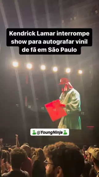 🚨Kendrick Lamar atende pedido e autografa vinil de To Pimp A Butterfly de fã brasileiro durante show em São Paulo 🔥‼️ Depois disso, Kendrick fez questão de trazer Thundercat, que se apresentou mais cedo, ao palco para um momento especial: “Façam barulho para meu mano Thundercat, nós nunca estivemos no mesmo palco. Essa é a primeira vez aqui no Brasil, é especial.. quero tirar uma foto desse momento. Sem ele o álbum To Pimp A Butterfly não existiria” ♥️ #kendricklamar #Correaté10kVis #Estrela