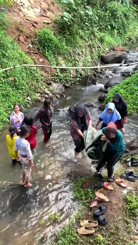 Bersihin karpet mesjid yang kotor di sungai bareng para bocil sekalian botram bersama