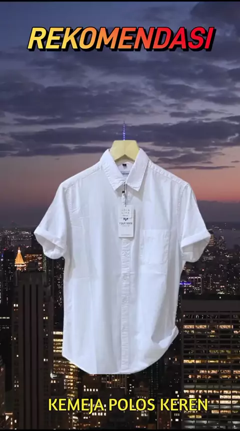 Kameja Lengan Pendek pria Polos Putih / Katun Tuwil Cowok Casual Kerah Turun harga menjadi Rp128.888 #kemeja #kemejakeren #