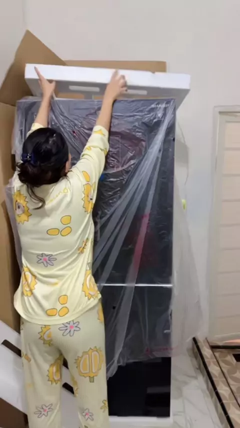 unboxing kulkas terbaru mami 🥰 #sharp #kulkassharp #aleeyaditya