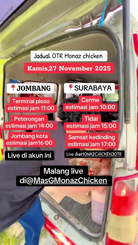 Jadwal kamis 27 November 2025@Mas G Monaz Chicken @MONAZ CHICKEN 3 OTR #ayamgemoymonazchicken #jadwalotrmonazchicken #jombang24jam #surabaya #malang