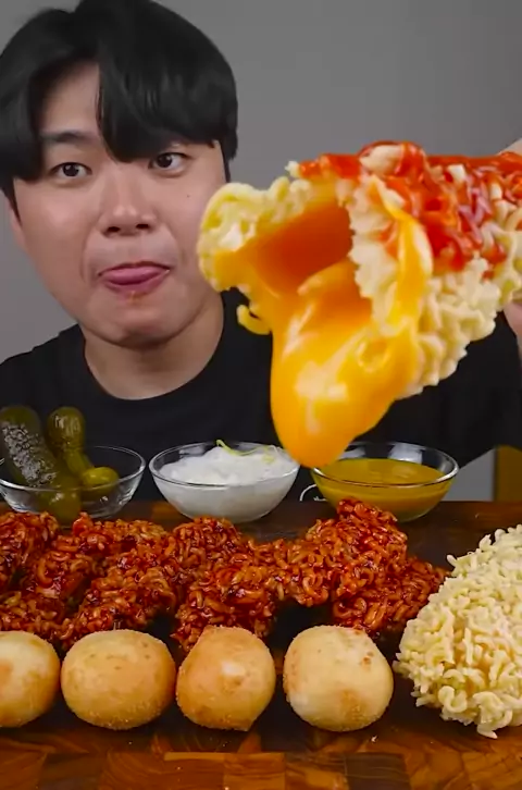 FIRE Noodles & FRIED CHICKEN & CHEESE STICK#gongsam#mukbanggongsam#bigbites#mukbang#asmr#food#mukbangkorea#koreanfood#firenoodles#friedchicken#cheesestick#favoritemukbanger#explor