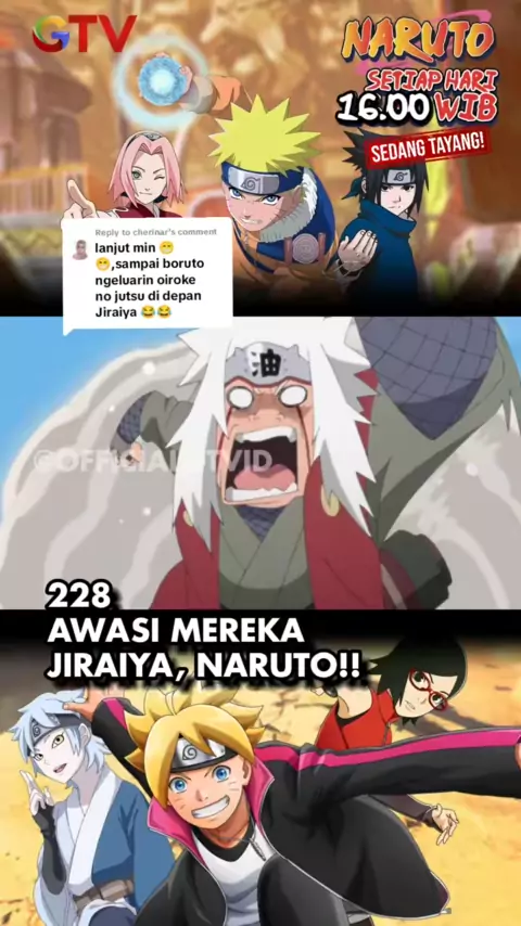 Replying to @cherinar Looh kok bisa tau π€π»πΏ Jangan lupa Nonton Naruto jam 4 yaaaa !!!! #naruto #boruto #narutogtv #borutogtv #konoha #oirokenojustsu #jiraiya