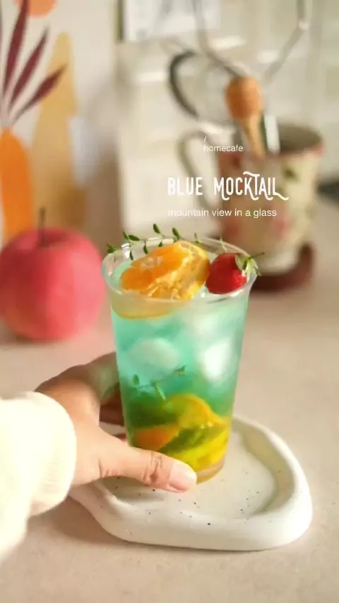 Blue Mocktail✨ . . . . 📎Recipe : - Orange and Lemon Slice Punch. - Ice Cubes. - 100ml Soda. - 50ml Blue Curacao Syrup. #havefun #Drinkfavorite #simplerecipe #fyp #fvp