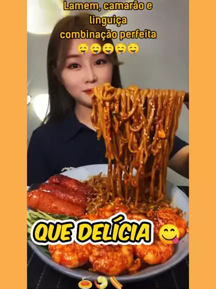 Lamem, camarão e linguiça, combinação perfeita 🍝🍤🌭 #asmr #mukbang #food #comida #viral