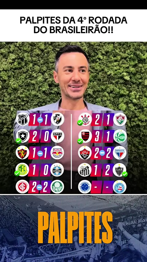 Deixe o seu palpites nos Comentários! #Futebol #palpites #Brasileirão #4Rodada