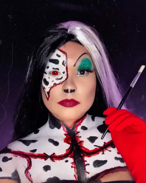 #CRUELLACRUEL . Vocês gostam de uma vilã né mesmo? Dessa vez trouxe a vilã mais cruel e maldosa da Disney. . Cruella do filme 101 Dálmatas, esse clássico que era meu desenho favorito. . OBS: NÃO SOU A FAVOR DE PELES DE ANIMAIS!!! Apenas me inspirei na make artística da @laurarochabeauty Insp: vídeo @elis_valeriano #crueladevil #101dalmatians #challengemaquiagem #luzdoluarchallenge #djtopochallenge #avarakerrabachallenge #hojeopaitaoffchallenge #maquiagemartistica #disney