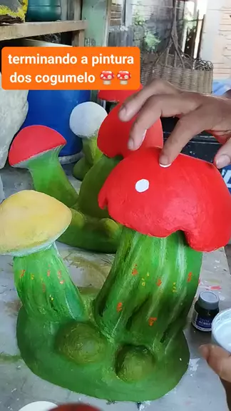 Terminando a pintura dos cogumelo ππ feito com cimento #Arte #viralizaliza
