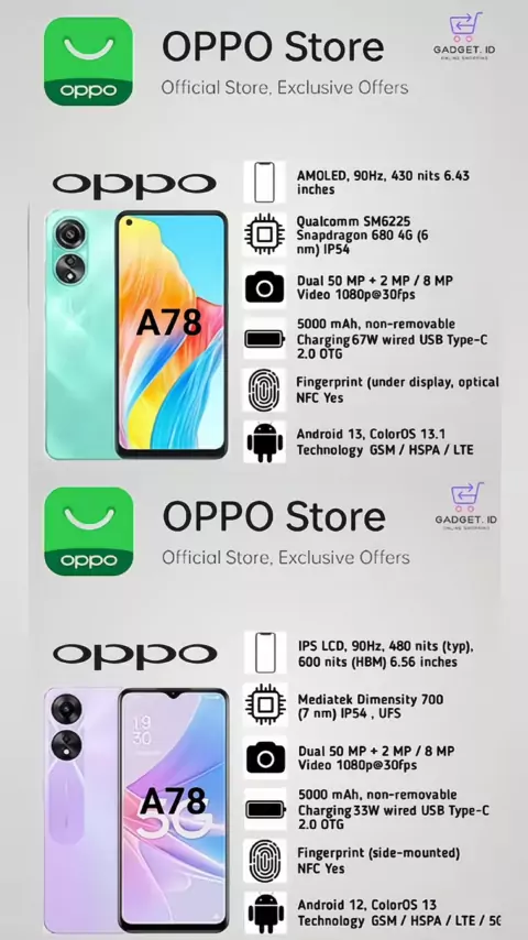 Perbandingan Spesifikasi Oppo A78 4G VS Oppo A78 5G . . #gadgets #gadgetin #gadget #shorts #trending #unboxing #review #сѓисѓџviral # #oppo #oppoa784g #oppoa785g