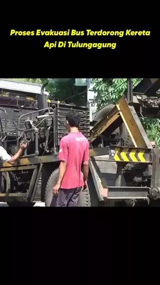 Proses Evakuasi Bus Terdorong Kereta Api Di Tulungagung