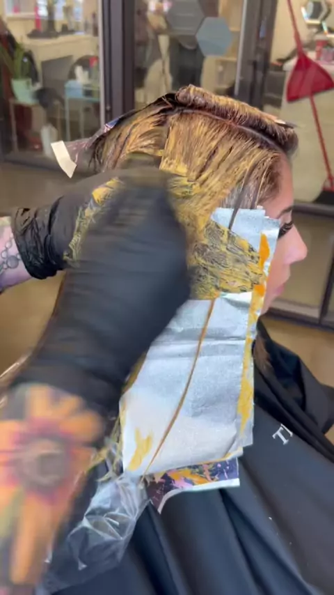 I know you’ll be wanting this formula😉 ROOTS: @Schwarzkopf Professional CAN 65g 7-57 / 65g 9-7 / 33g 7-77 / 33g 7-55 with 30 vol IGORA Royal ENDS: 100g 7-57 / 75g 7-77 / 25g 7-55 with 20 vol IGORA Royal!#hairtransformation#copperhair#