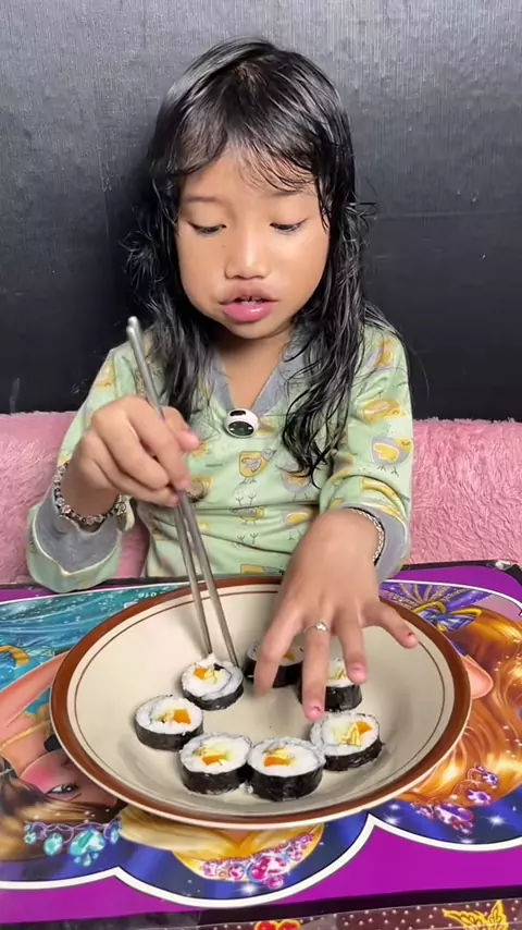 Membalas @ASING nazra makan shushi… tapi kok mirip kimbab yaa? bingung dech#NazraMukbang#MukbangAnak#anakmakanlahap#foodviral#kimbab