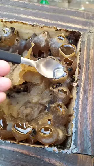Revisando uma colônia de abelhas sem ferrão Mandaçaia MQQ (com 4 meses) e provando o seu mel.😋🐝 #abelhasenativas #KwaiConquistar50k #KwaiAnimal #zootecnia #meliponicultura