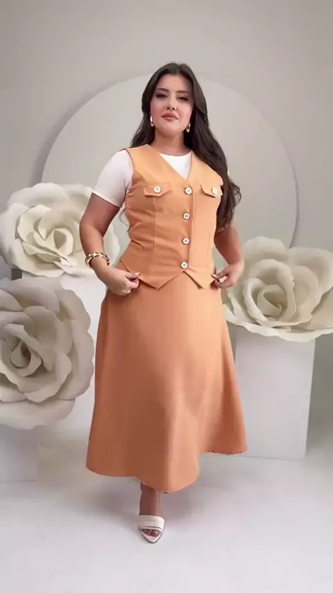 Conjunto Colete e Saia em Alfaiataria elegante com intocável moda feminina e Evangélica #conjutoalfaiataria#modaevangelica