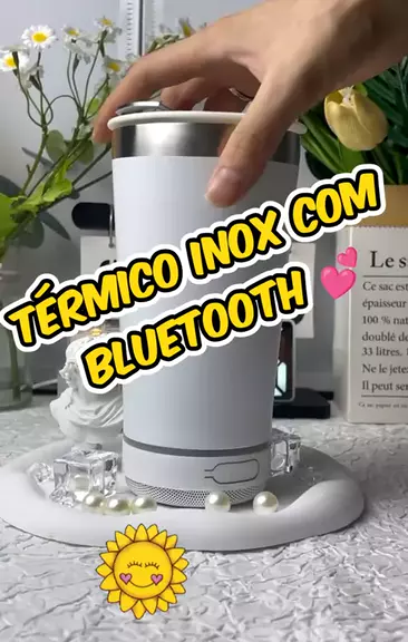 Dê uma olhada em 420ML Copo térmico inox com tampa abridor Caneca de cerveja com áudio Bluetooth #shoppkawai