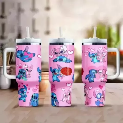 Copo Térmico de Aço Inoxidável com Tema de Stitch, com Tampa e Canudo - Perfeito para Bebidas Ótimo para Presentes #stitch #fyp #garrafa #achadinhos