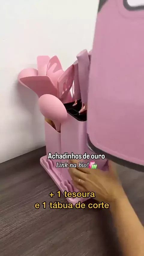 Presente perfeito para as mães que amam cozinhar! 🎁👩🍳 Este Kit de Utensílios California é completo e lindo, todo na cor rosa! O que vem na caixa: 1 Suporte 11 Utensílios de Silicone (colheres, espátulas, fouet, pincel, pegador e mais!) 5 Facas afiadas (com cabo rosa e metalizado) 1 Tesoura de cozinha 1 Tábua de corte Um conjunto completo, funcional e super estiloso para deixar a cozinha ainda mais charmosa! #CozinhaRosa #UtensíliosDeCozinha #KwaiChef2025 #Organização #sho