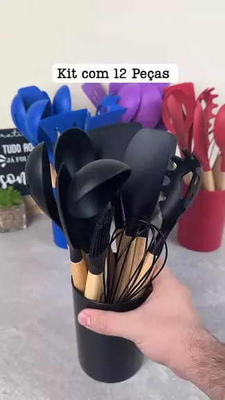 Kit de Utensílios de cozinha em silicone. 12 Peças. O link para compra está na rede vizinha. #lojaomercadolivre #utensiliosdecozinha #utensiliosdomesticos #cozinha #casa