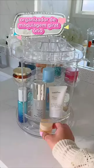 "Está cansada de perder tempo procurando suas maquiagens favoritas? Apresento a solução perfeita: o Organizador de Maquiagens Giratório Cosméticos 360º em Acrílico Grande! Nunca foi tão fácil manter sua coleção organizada e acessível. #makes
