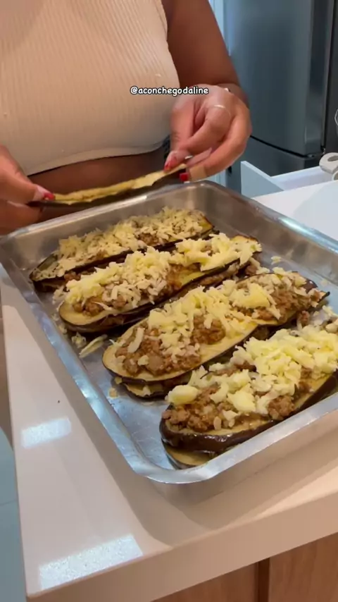 Já fizeram assim? 😮💨😮💨😍 Salva pra testar ❤️😍 . #berinjela #berinjelacomcarnemoida