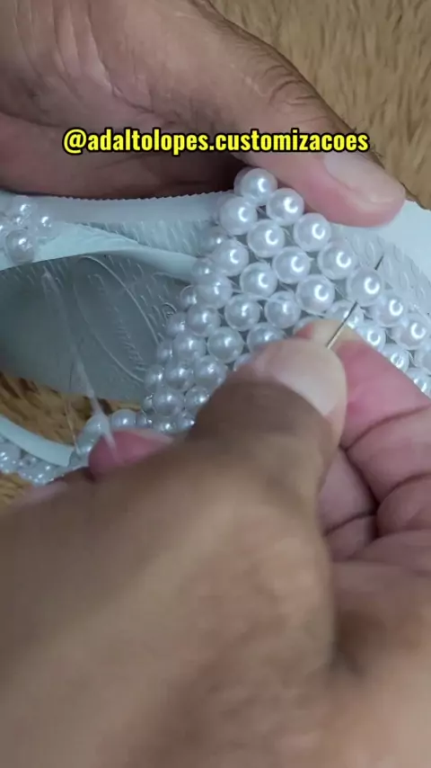 Sandalia bordadas com Pérolas Gladiadora #artesanato #chinelosbordados #maisgolds