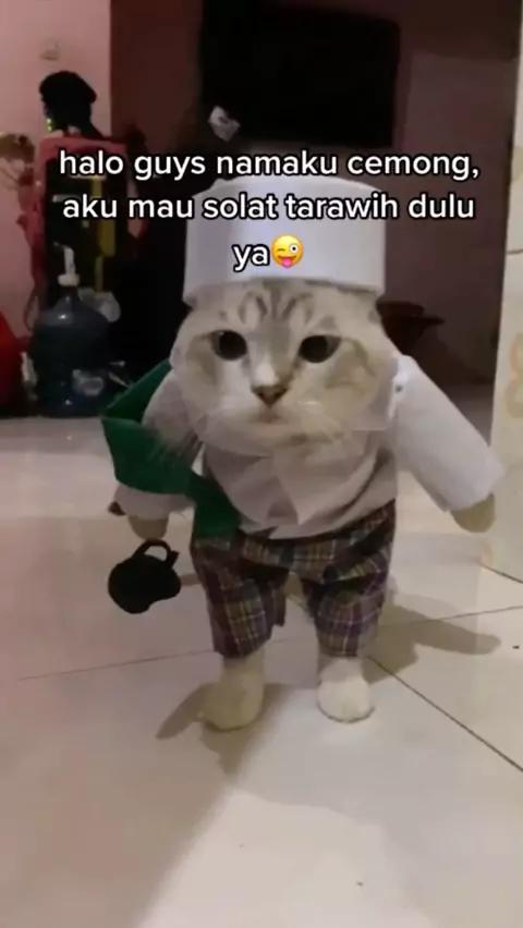 kucingku namanya cemong, dia mau tarawih guys😂nama hewan peliharaan kalian apa? #SenyummuSedekahmu #jogetramadhan