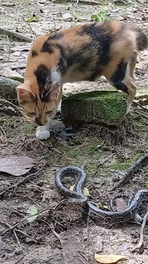 gato tenta capturar cobra giboia #video #viralvideo #Rells #fyp #mundoanimal
